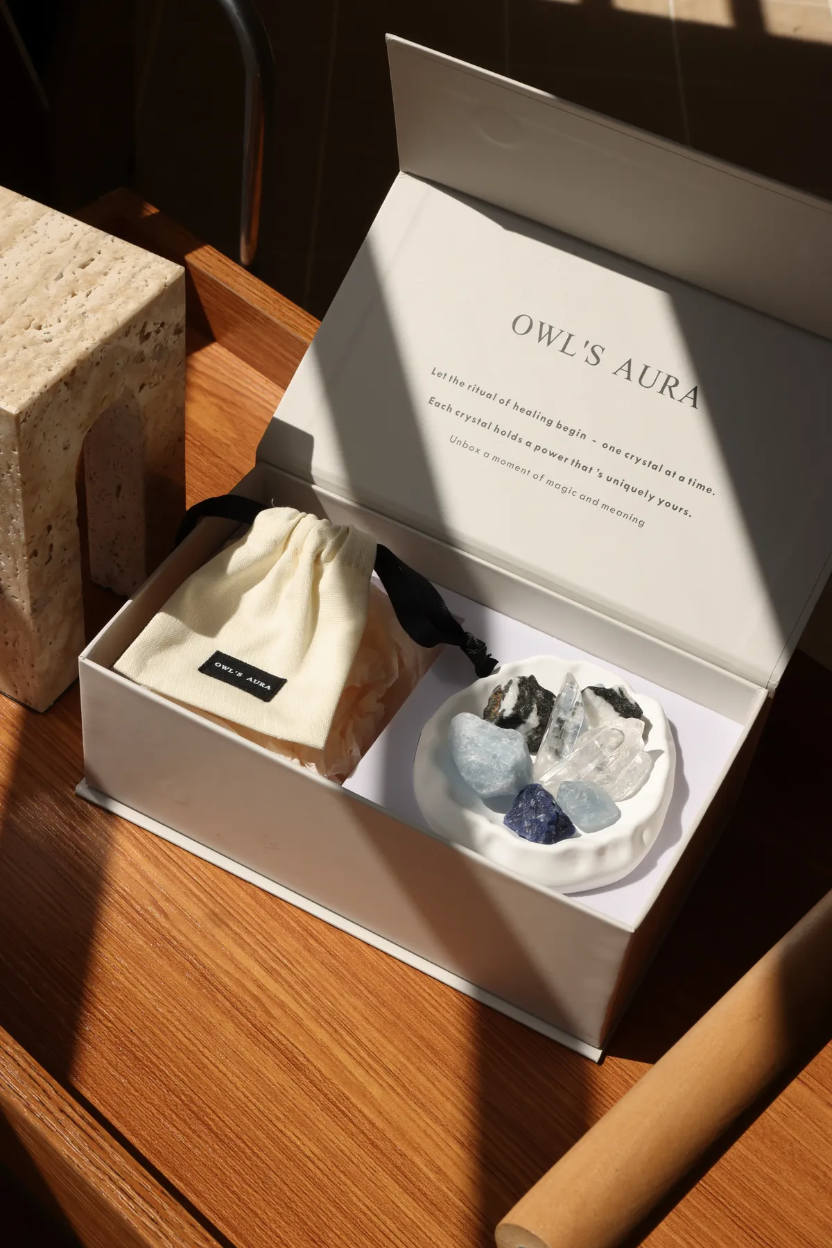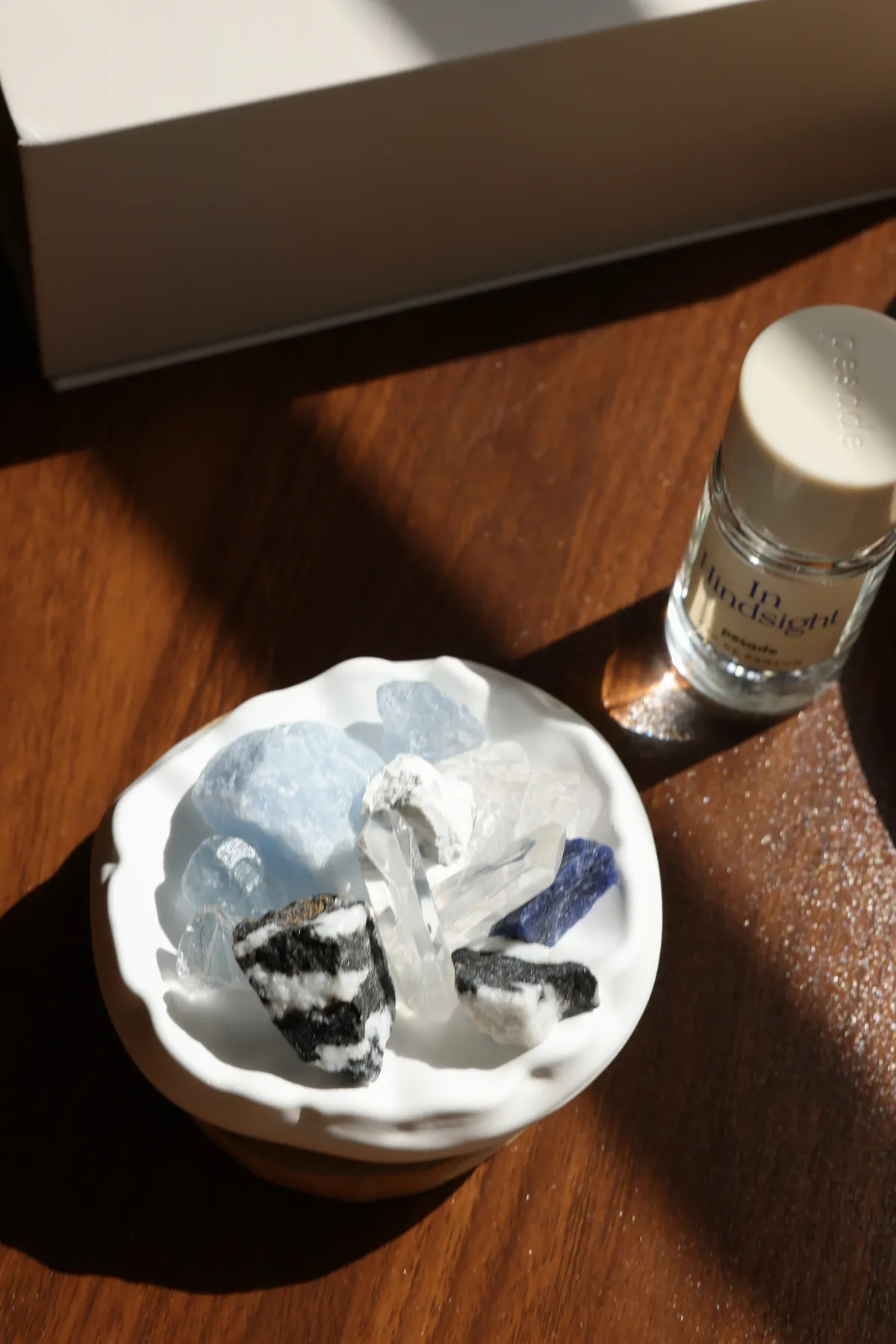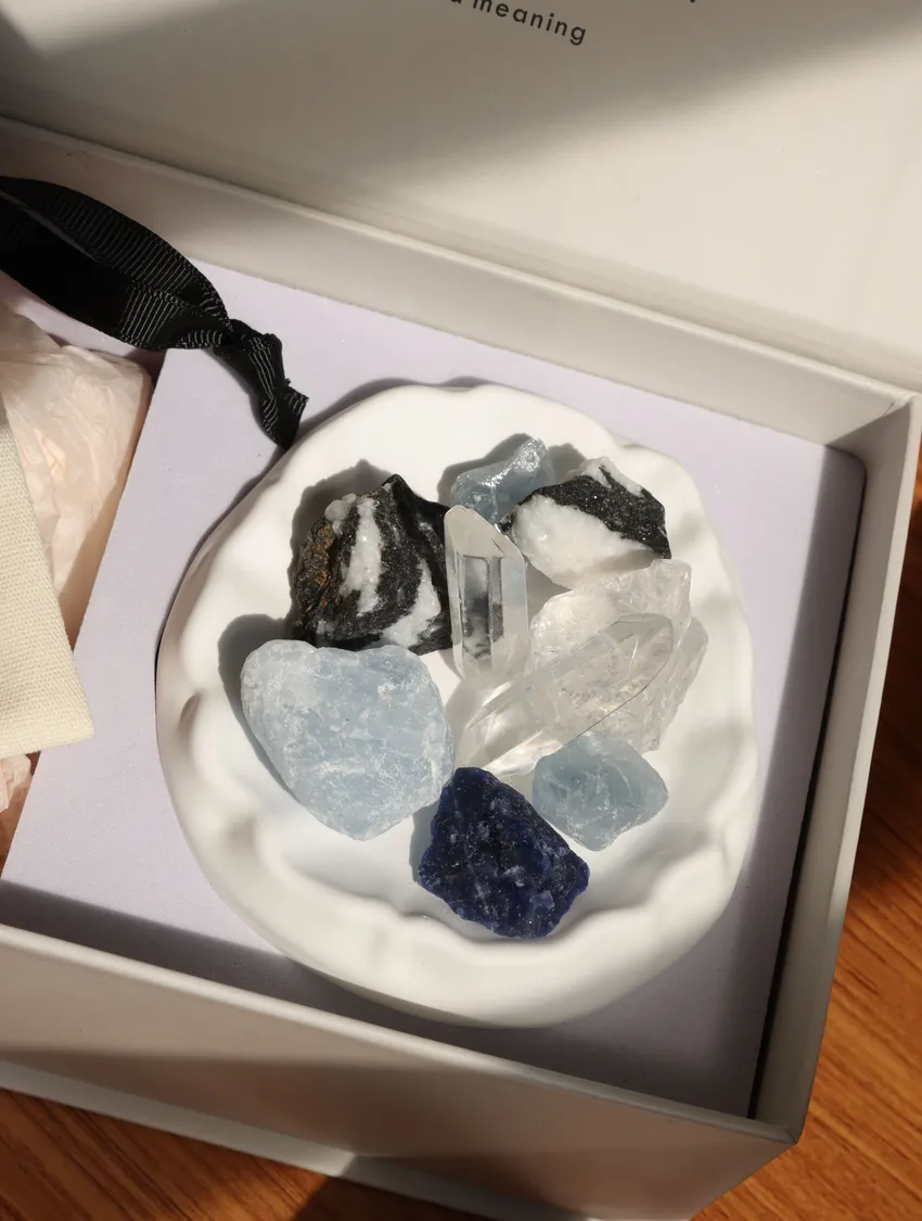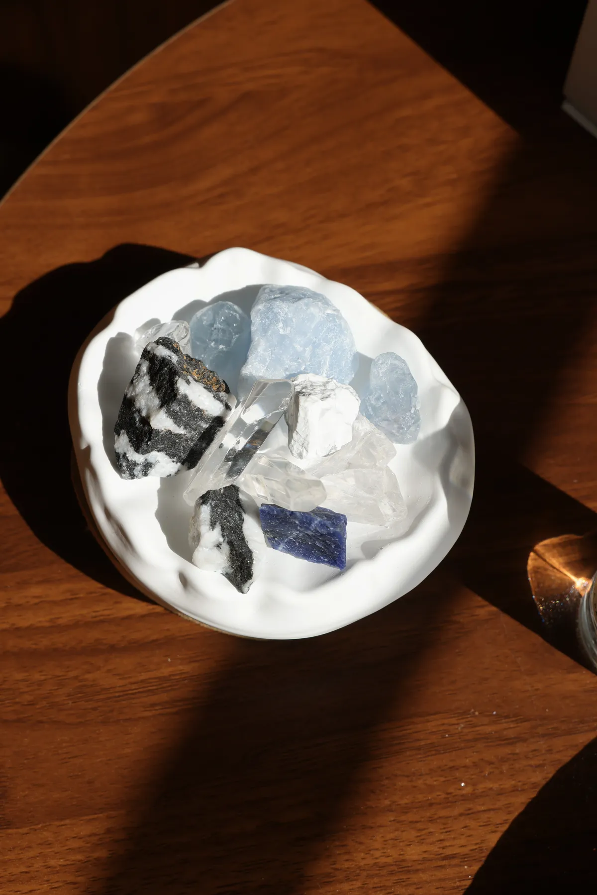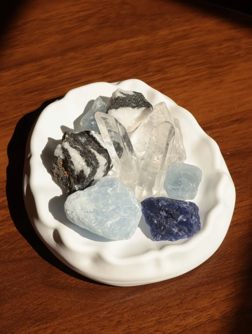 天青石、藍紋石、白水晶、斑馬石、藍方解石、白水晶柱