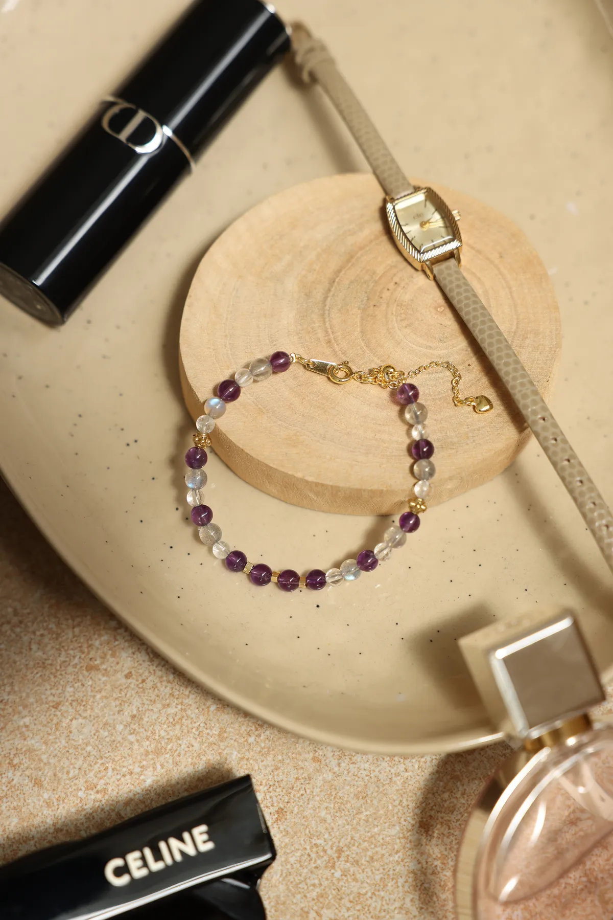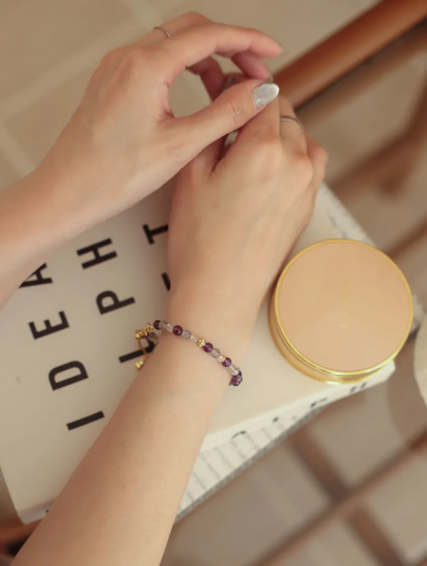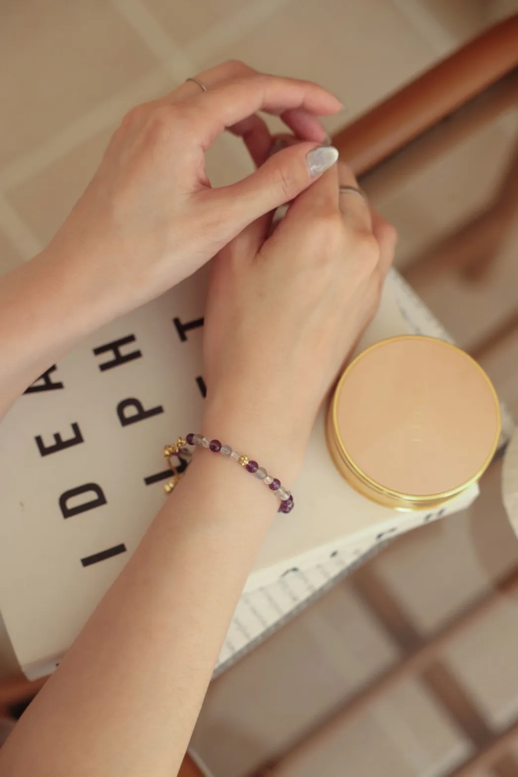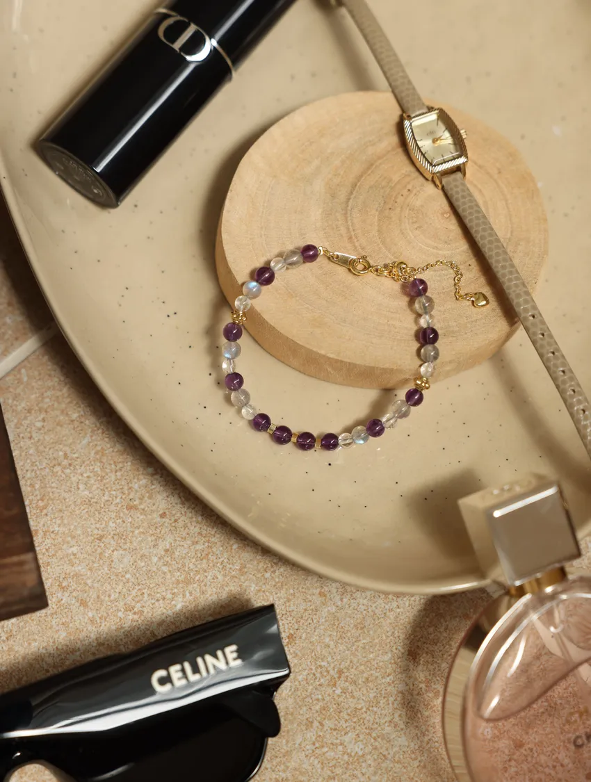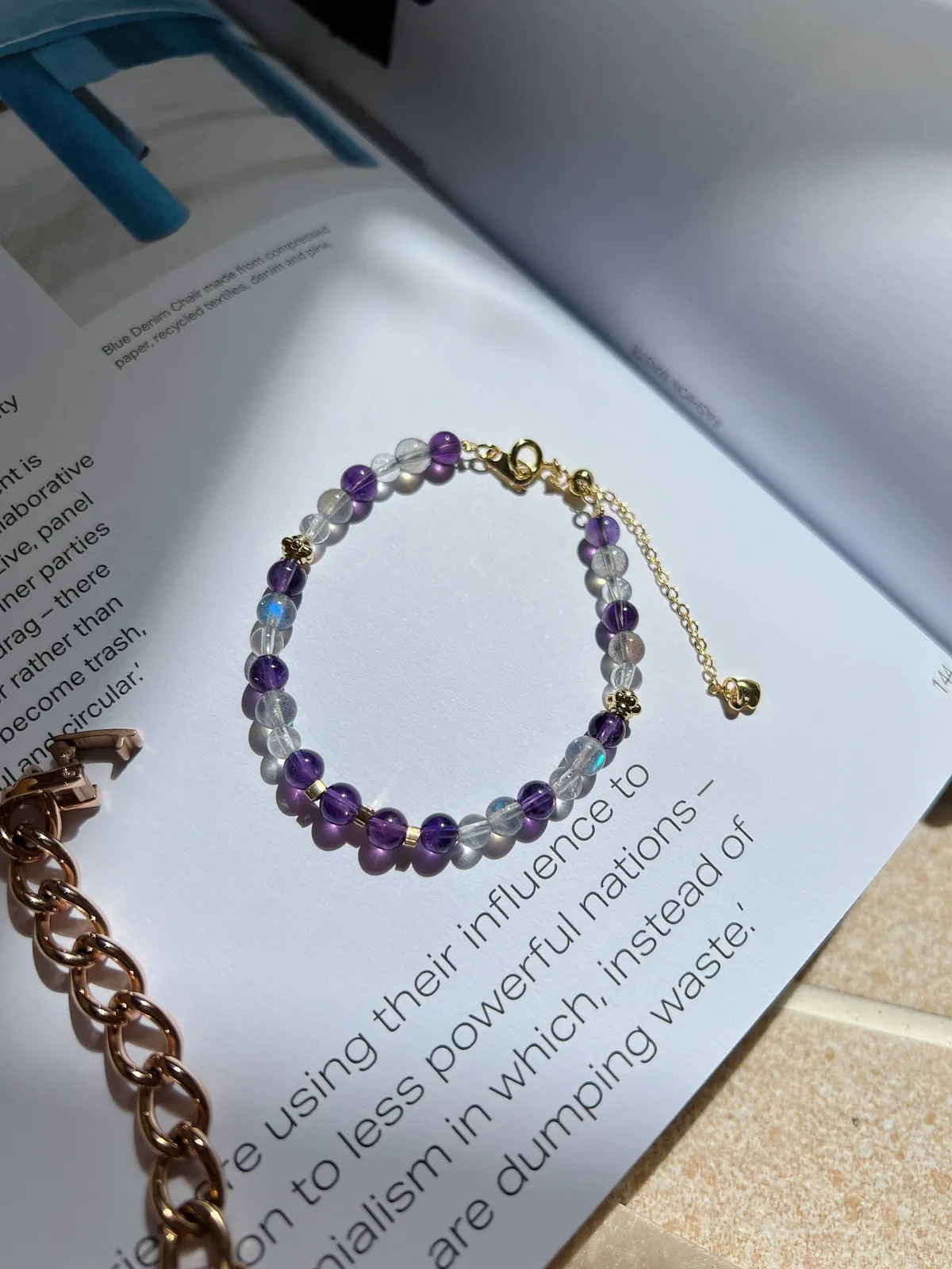 紫水晶、灰月光、白水晶、銅鍍18K金