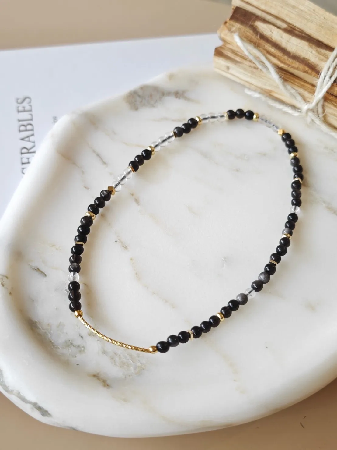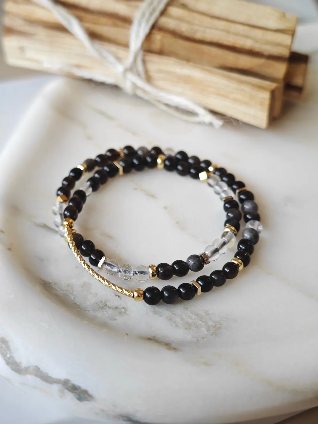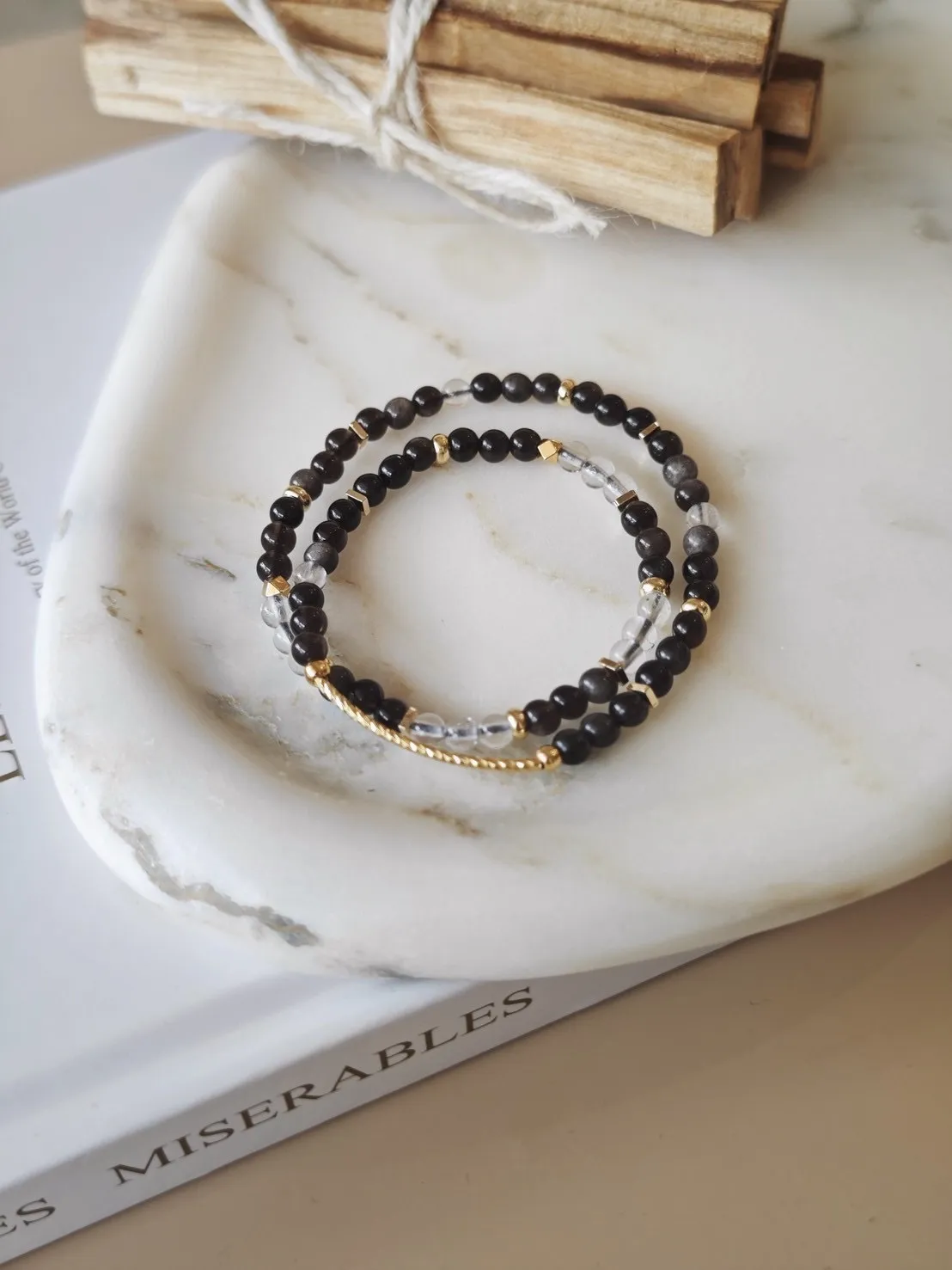 銀曜石被認為有強大的保護力,能幫助抵擋負面能量、惡意攻擊及心理攻擊,為佩戴者建立能量屏障,能有效阻擋負面能量的侵擾,保護佩戴者免受不良磁場的影響,被視為強大的護身符。