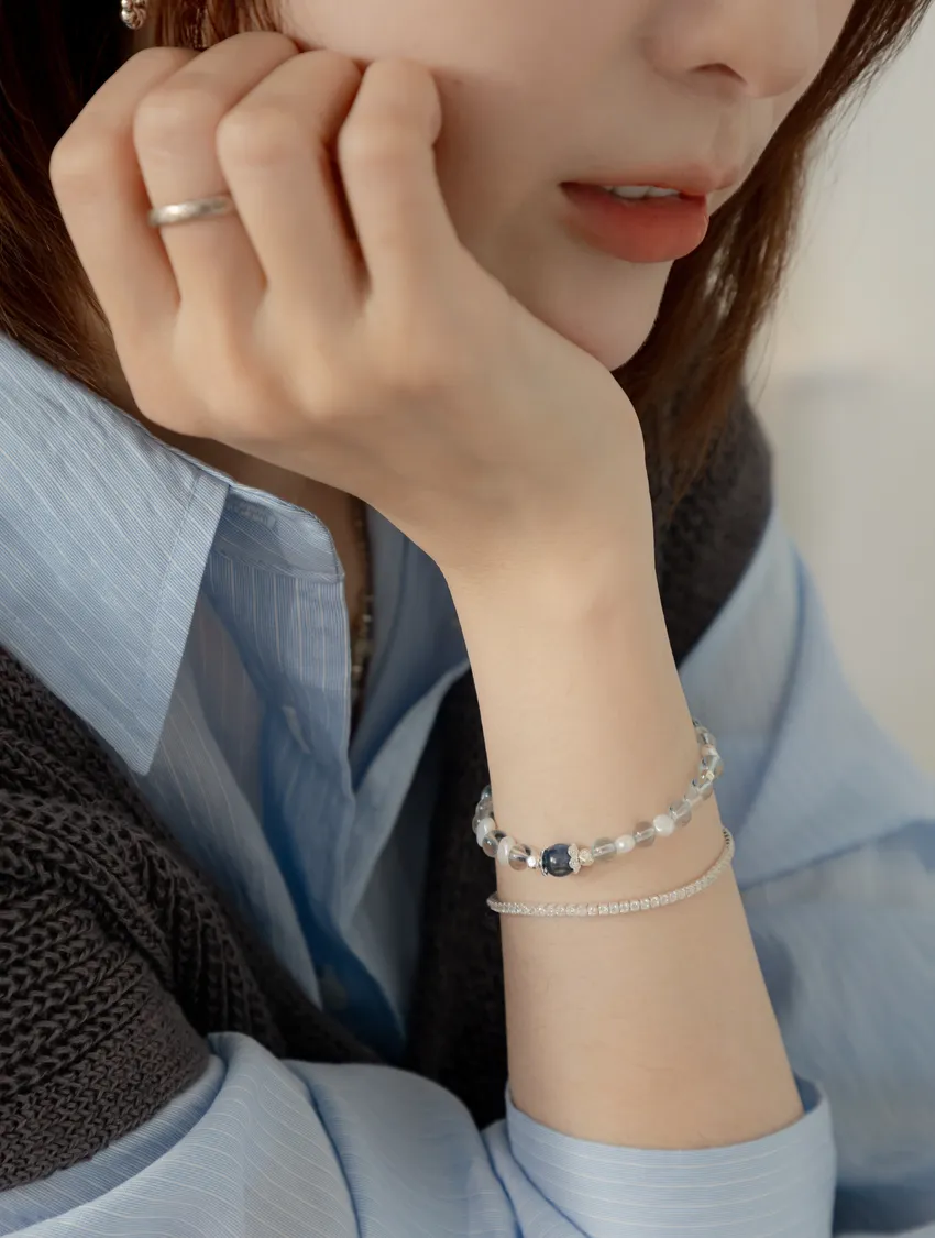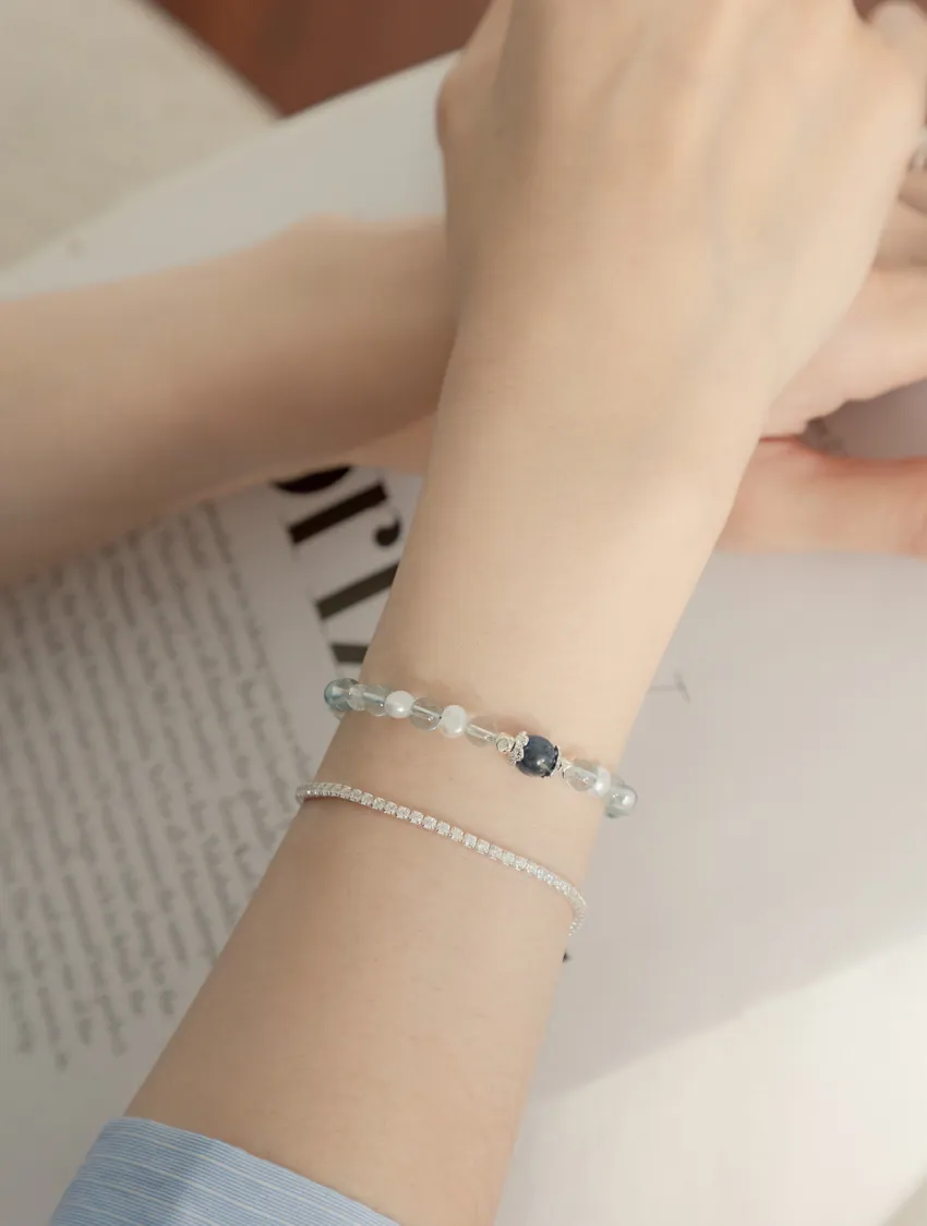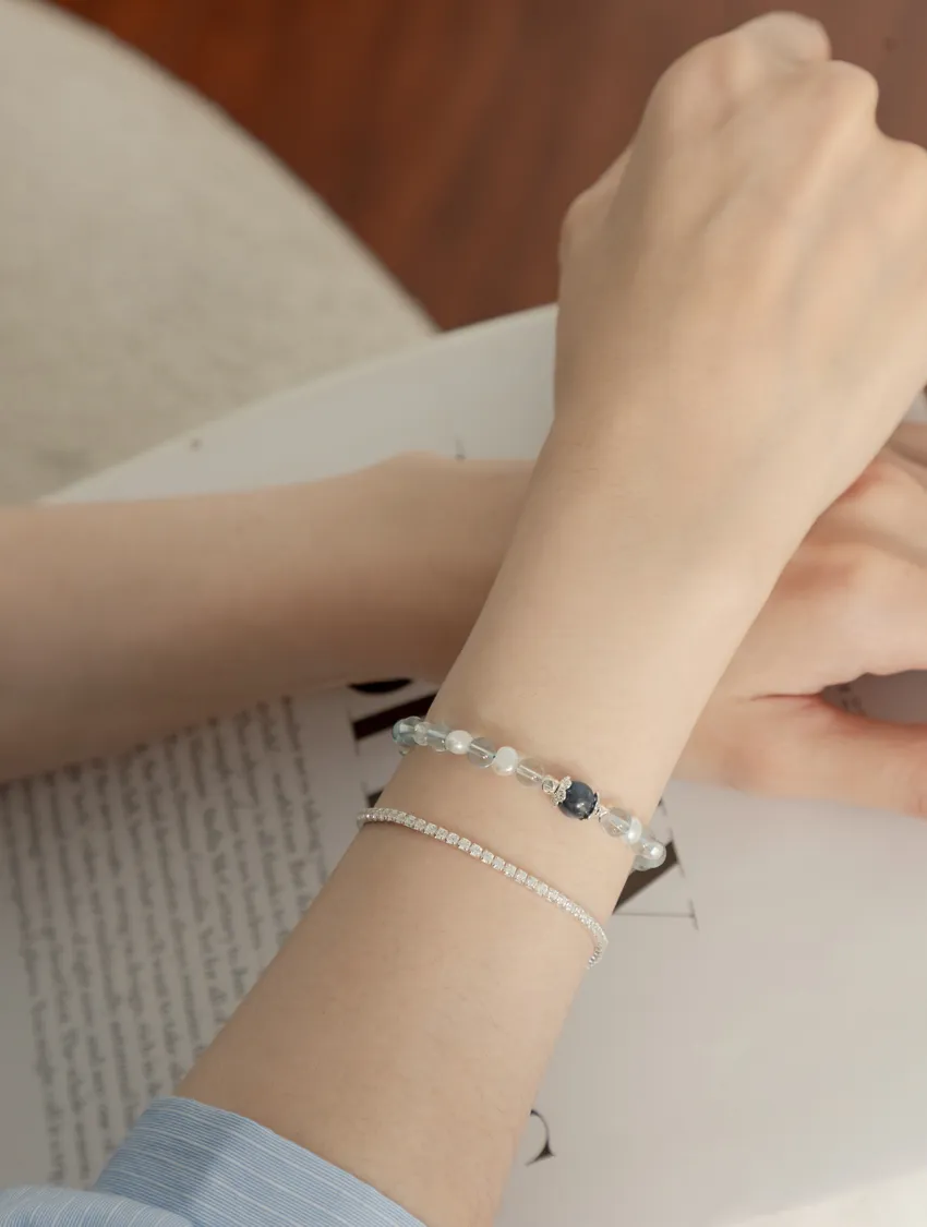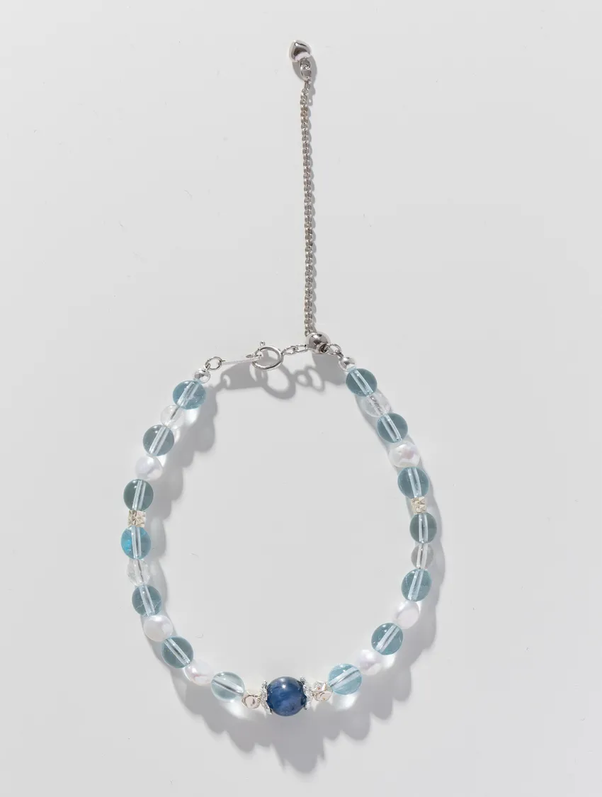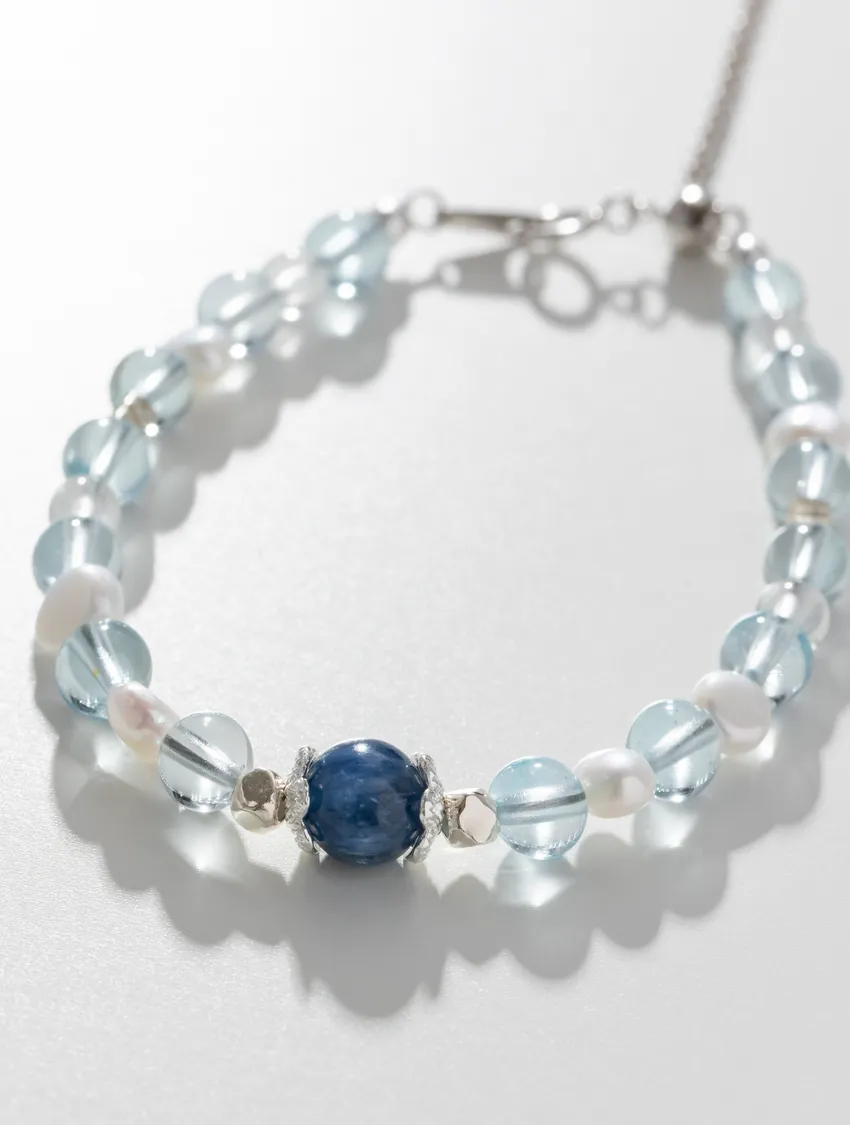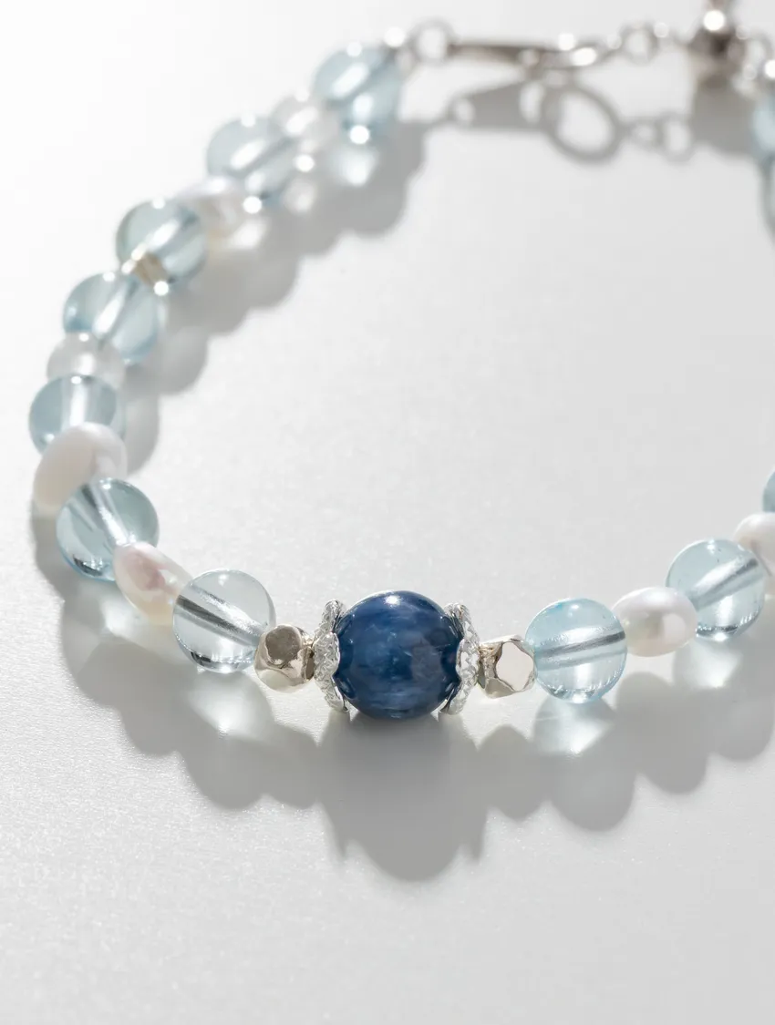 藍色托帕石、藍晶石、珍珠、白水晶