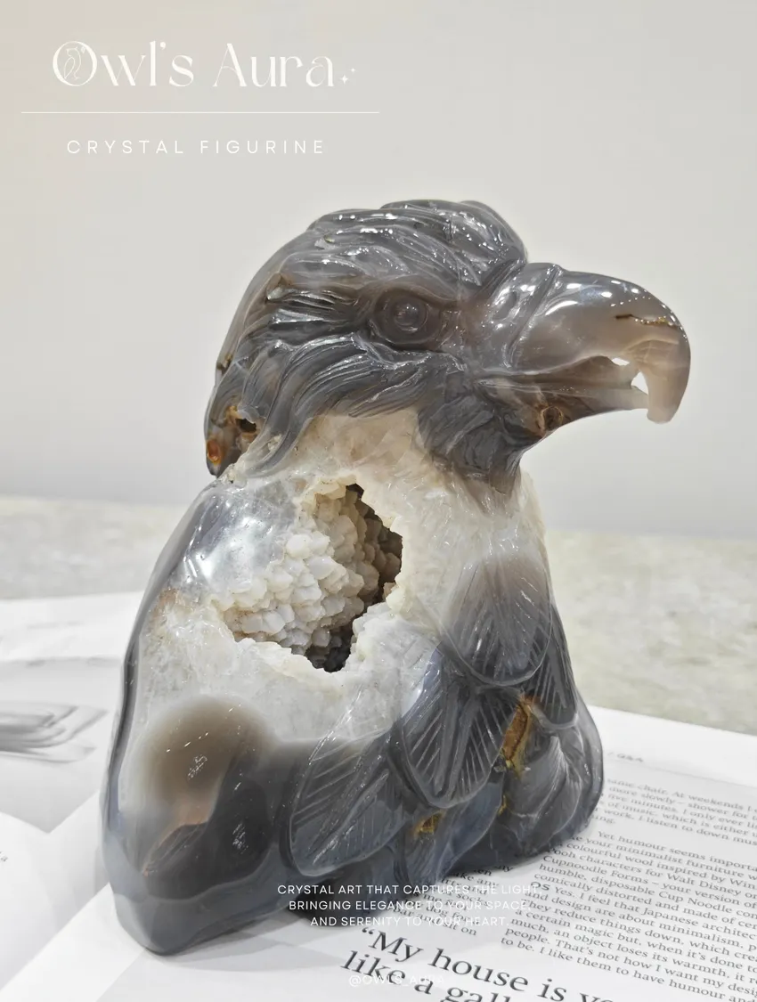 由匠人手工雕刻的大鵬展翅於晶體之上,象徵志向高遠、扶搖直上,寓意前途無量、心懷寬廣。