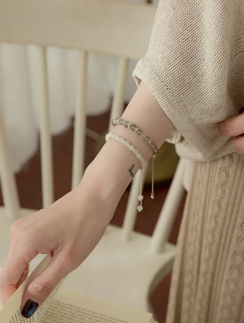 月光石、白水晶、純銀、鍍白金