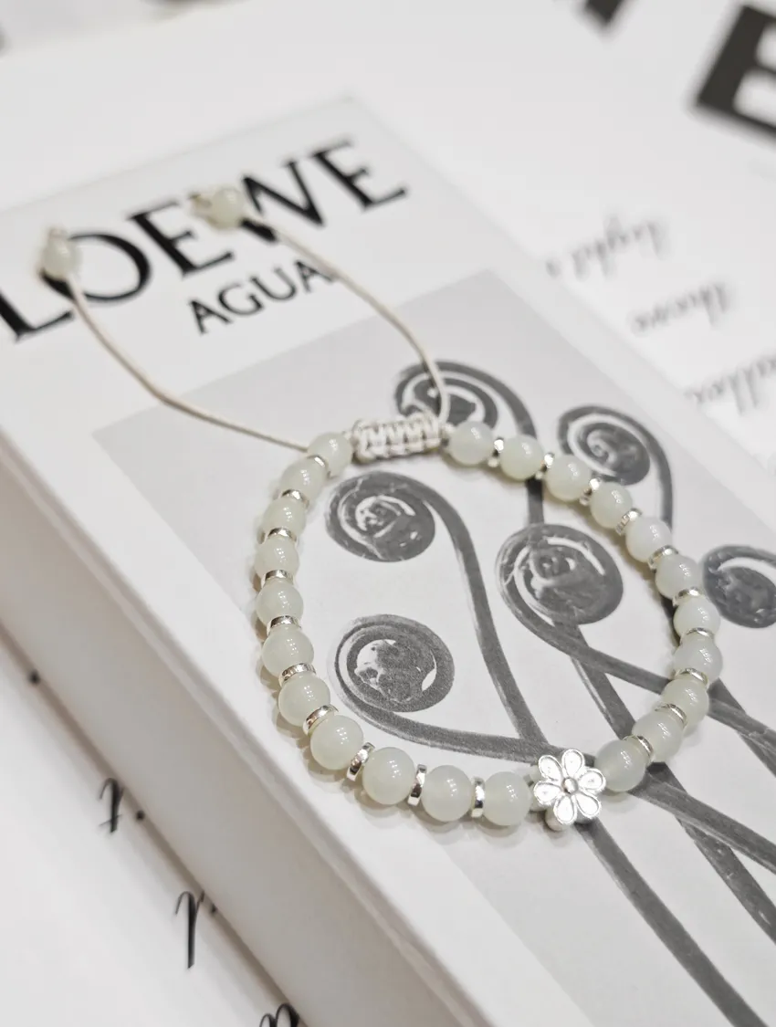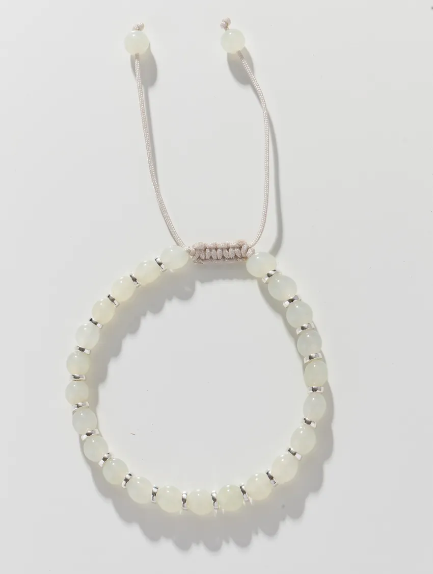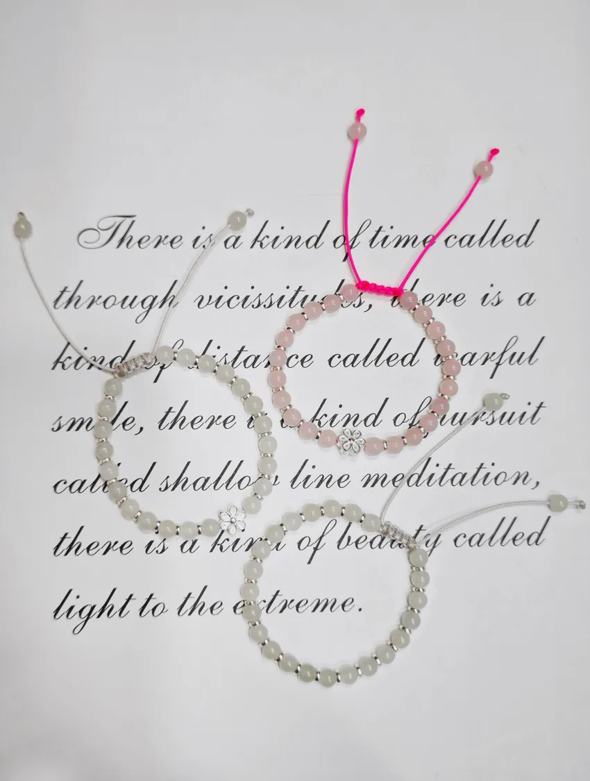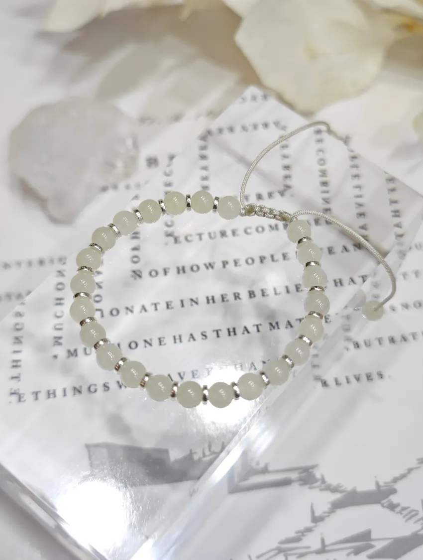 舒緩心情和田玉溫潤光滑,觸感舒適,長期佩戴能給人安全感與平靜感。提升氣質象徵純淨、簡約,佩戴者看起來優雅、沉穩、有格調。文化象徵古人認為玉代表高潔、正直和吉祥,佩戴和田玉可展現品味與文化修養。日常保護傳統說法認為玉能「隨身護體」,雖非醫學功效,但為佩戴者帶來心理上的安心感。- 商品材質: 和田玉、純銀 72號玉線 可抽拉調整 (手鍊皆為手工編製,尺寸均可能有合理誤差) *和田玉尺寸約5mm- 天然水晶商品提醒: 每顆水晶皆為天然礦石,每一顆水晶的色澤、紋理都略有不同,這些自然形成的獨特性正是天然水晶的迷人之處哦! 商品採隨機出貨,讓緣分為你挑選最適合你的水晶寶寶,靜待它與你相遇的那一刻。 - *每一款設計都是我們細心搭配、用心完成的固定款式,因此無法做調整或修改。 我們挑選每一顆水晶時都非常謹慎,並依照整體比例與和諧度進行配置,沒有多餘的材料能夠額外變動。 為了維持作品的穩定品質與整體美感,我們暫時無法提供款式更動的服務,還請多多包涵與體諒。 謝謝理解我們對每件作品的堅持與用心💛