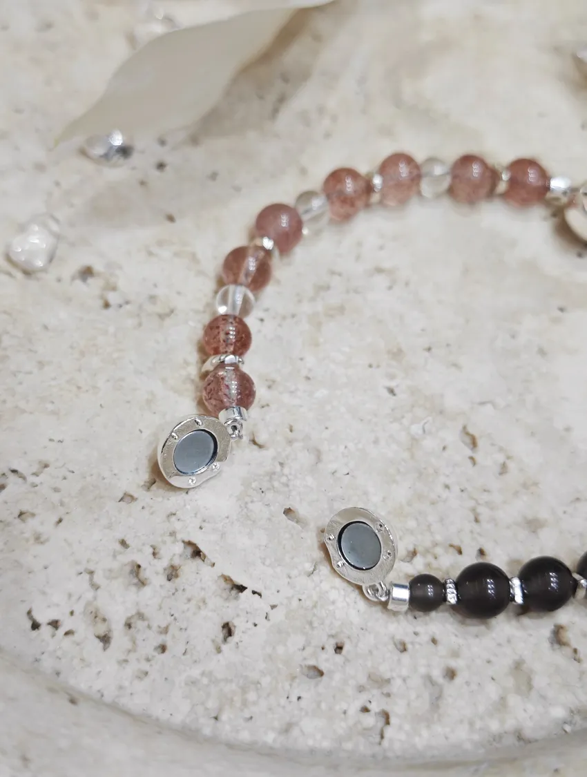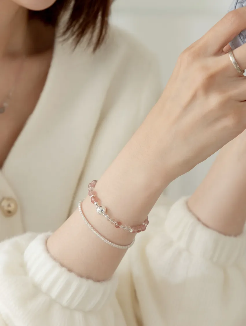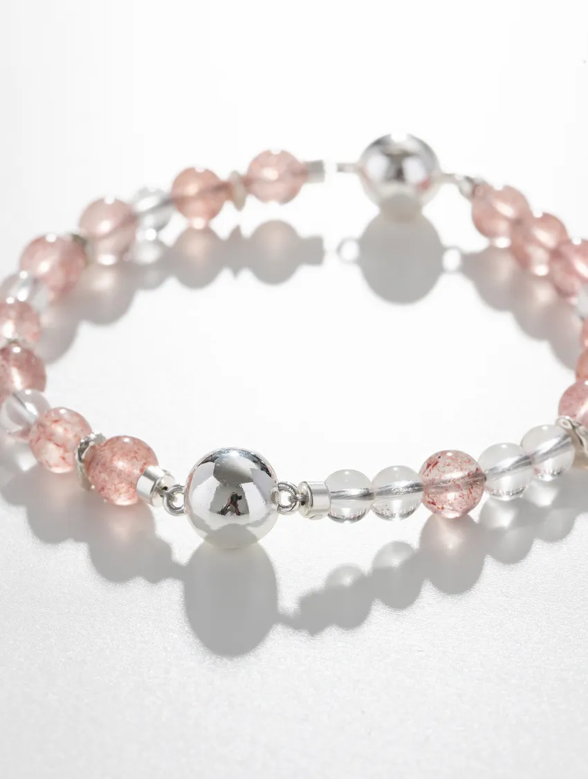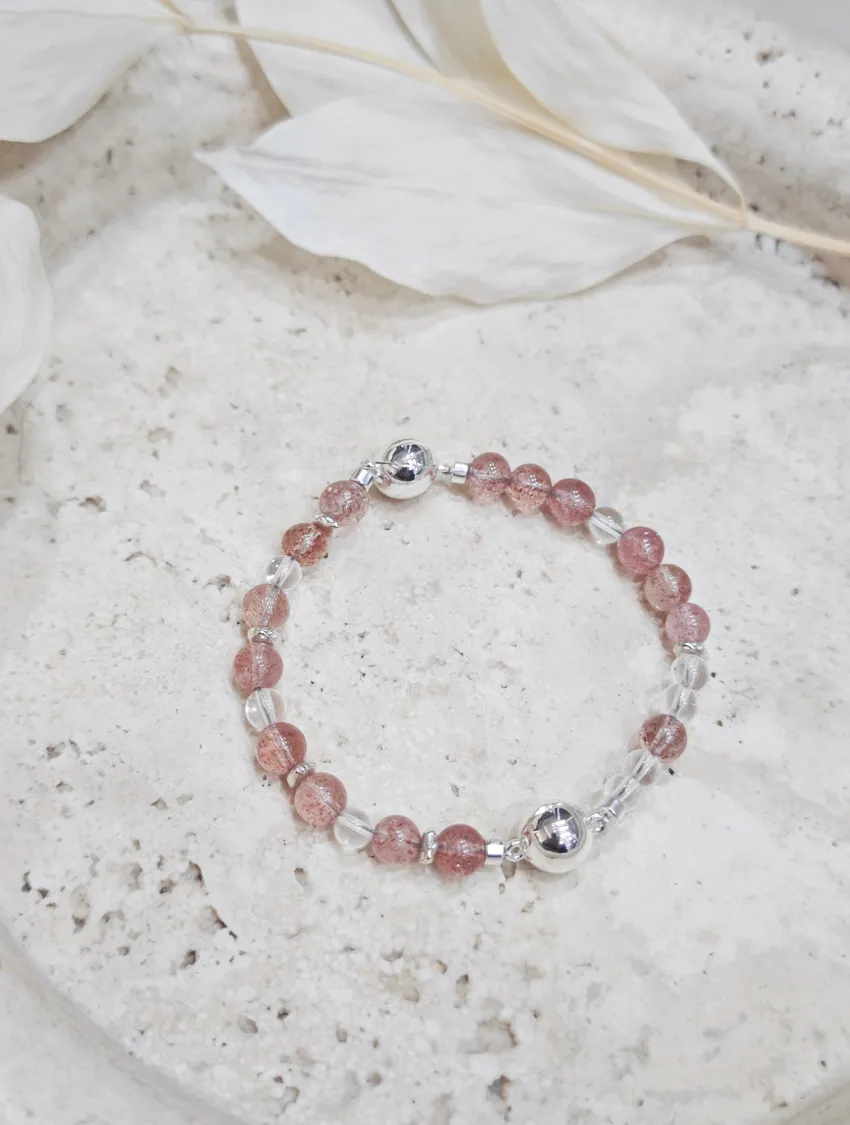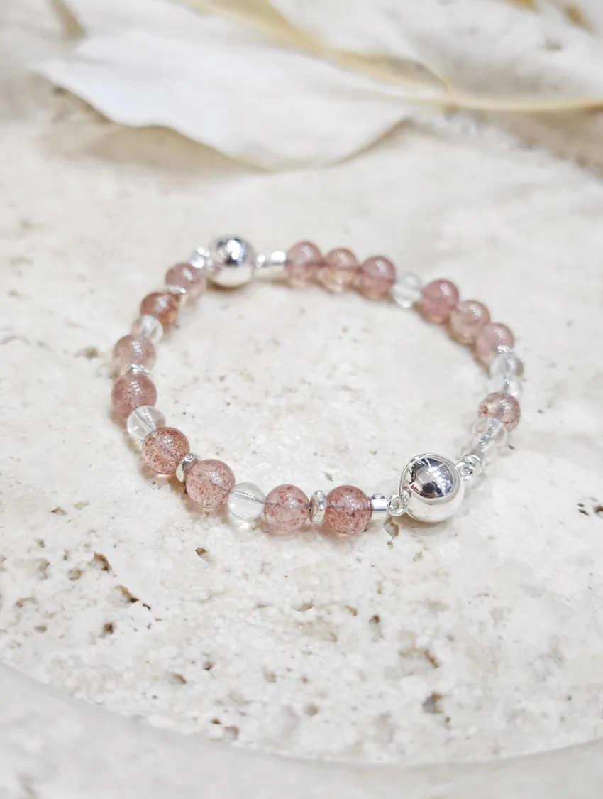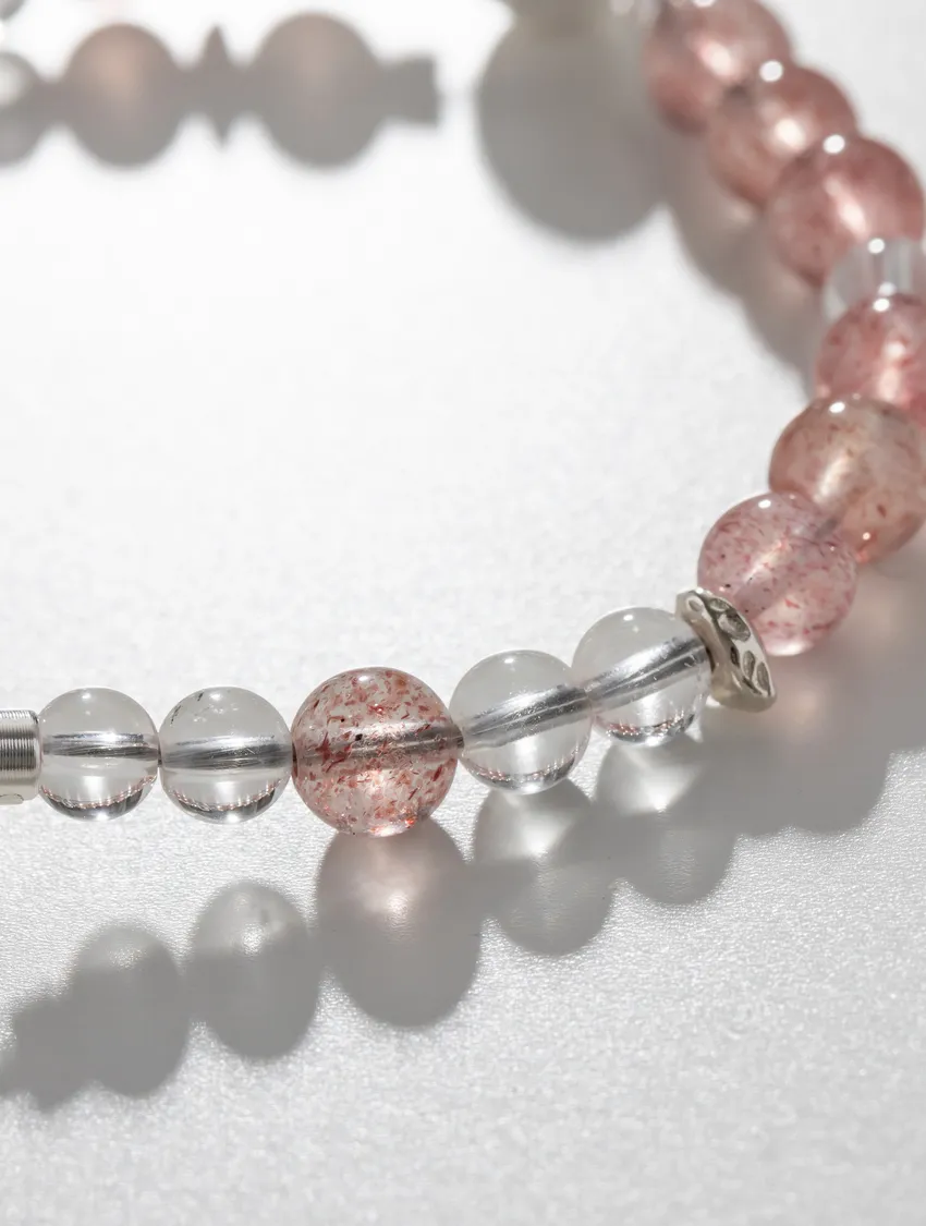 草莓晶(Strawberry Quartz)是一種粉紅色系的天然水晶,因內含細微礦物(如赤鐵礦、針鐵礦)而呈現出閃亮的「草莓籽」般晶點