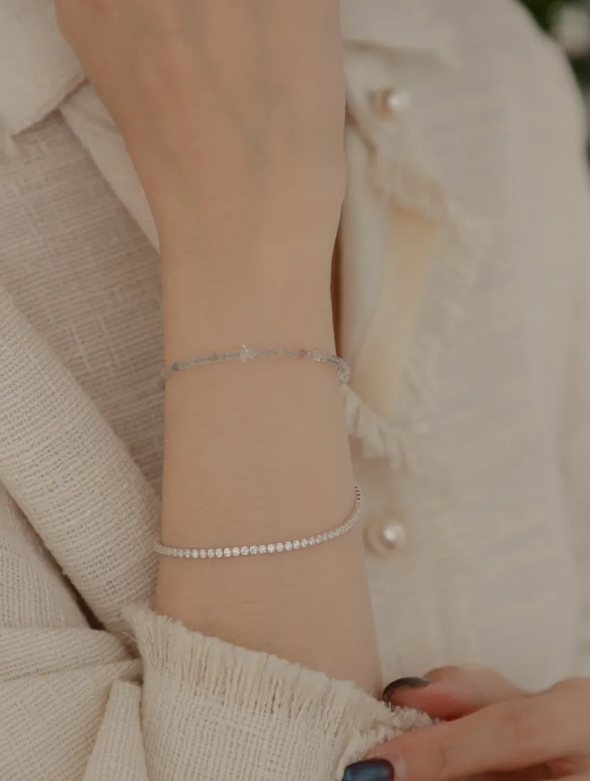 彩螢石同時包含多種顏色,象徵整體能量的協調與平衡 常被認為有助於情緒穩定、減少內在混亂 - 被稱為「學習之石」 被認為能幫助整理雜亂想法 對於容易想太多、分心的人,象徵「讓思路更清楚」- 閃靈鑽:能量潔淨與提升,強化靈性連結與直覺力。 幫助釋放負面情緒,帶來心靈的光明與守護。 - 商品材質: 彩螢石、閃靈鑽、純銀 韓國鋼色金絲軟線編製 手圍最小13cm,可抽拉調整 (手鍊皆為手工編製,尺寸均可能有合理誤差) *白水晶尺寸約4mm - 天然水晶商品提醒: 每顆水晶皆為天然礦石,每一顆水晶的色澤、紋理都略有不同,這些自然形成的獨特性正是天然水晶的迷人之處哦! 商品採隨機出貨,讓緣分為你挑選最適合你的水晶寶寶,靜待它與你相遇的那一刻。 - *每一款設計都是我們細心搭配、用心完成的固定款式,因此無法做調整或修改。 我們挑選每一顆水晶時都非常謹慎,並依照整體比例與和諧度進行配置,沒有多餘的材料能夠額外變動。 為了維持作品的穩定品質與整體美感,我們暫時無法提供款式更動的服務,還請多多包涵與體諒。 謝謝理解我們對每件作品的堅持與用心💛