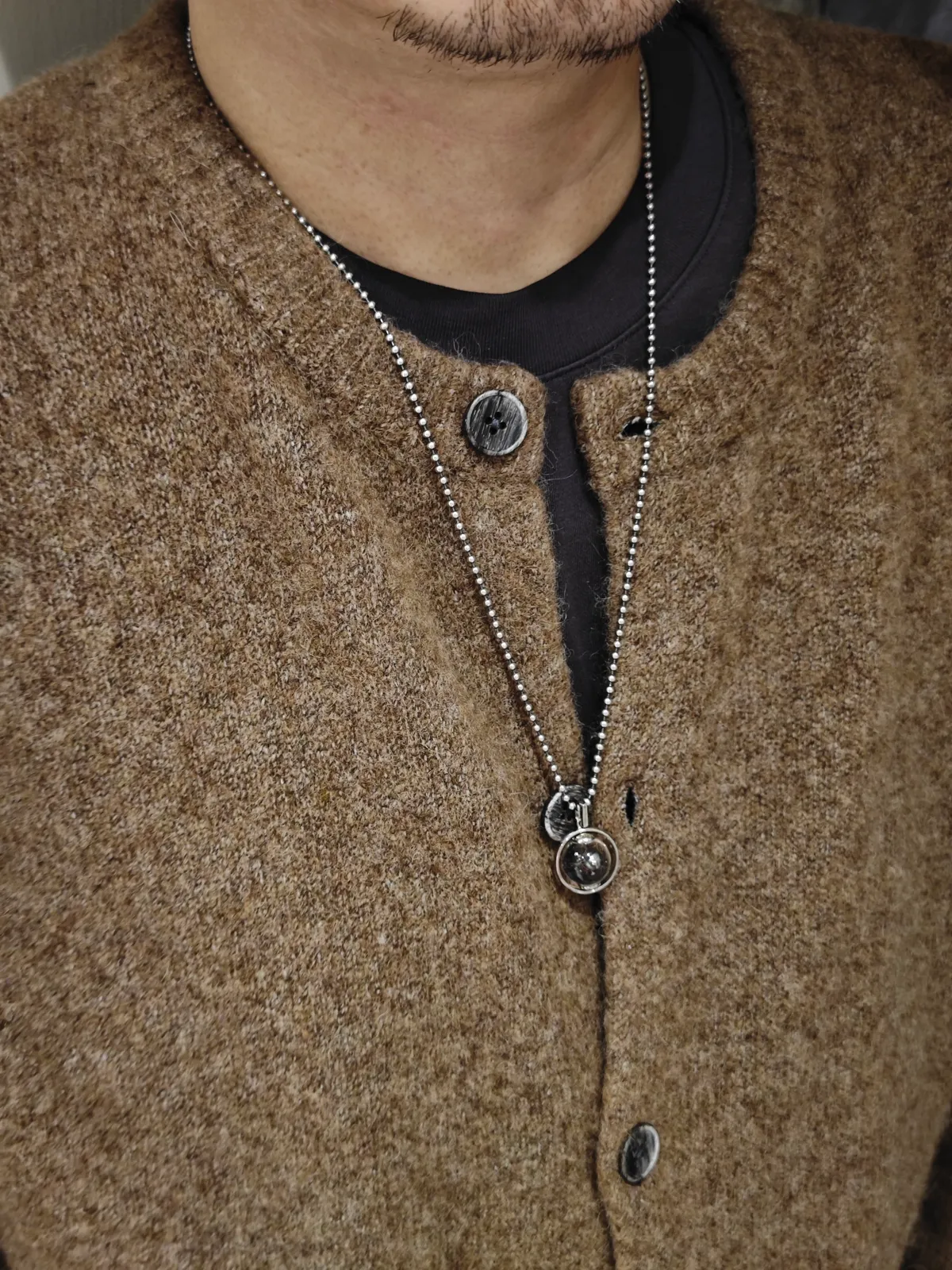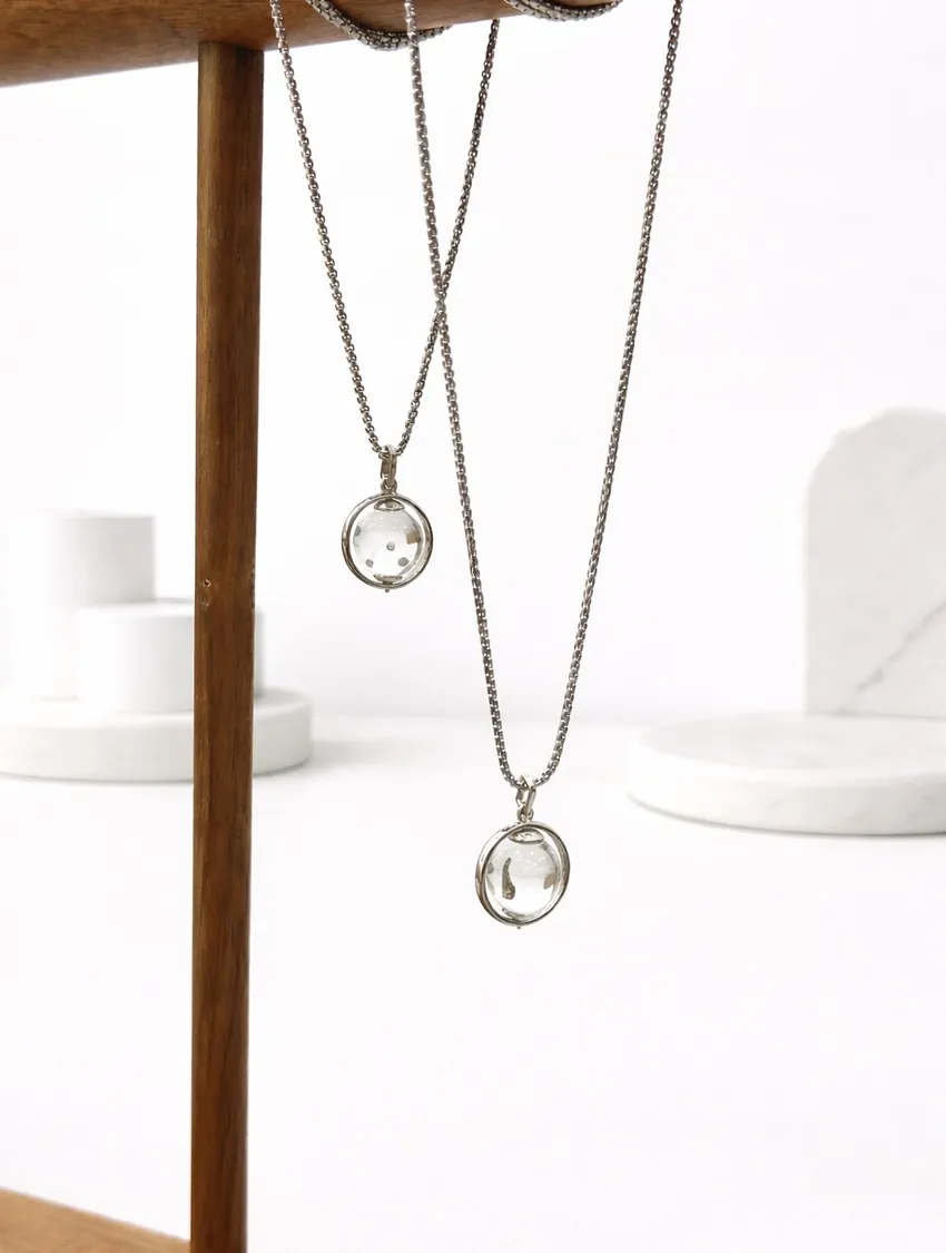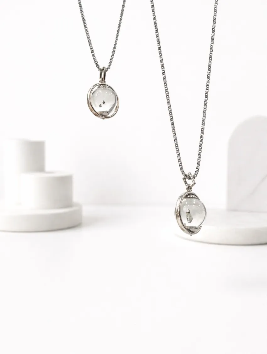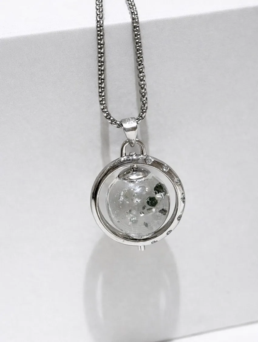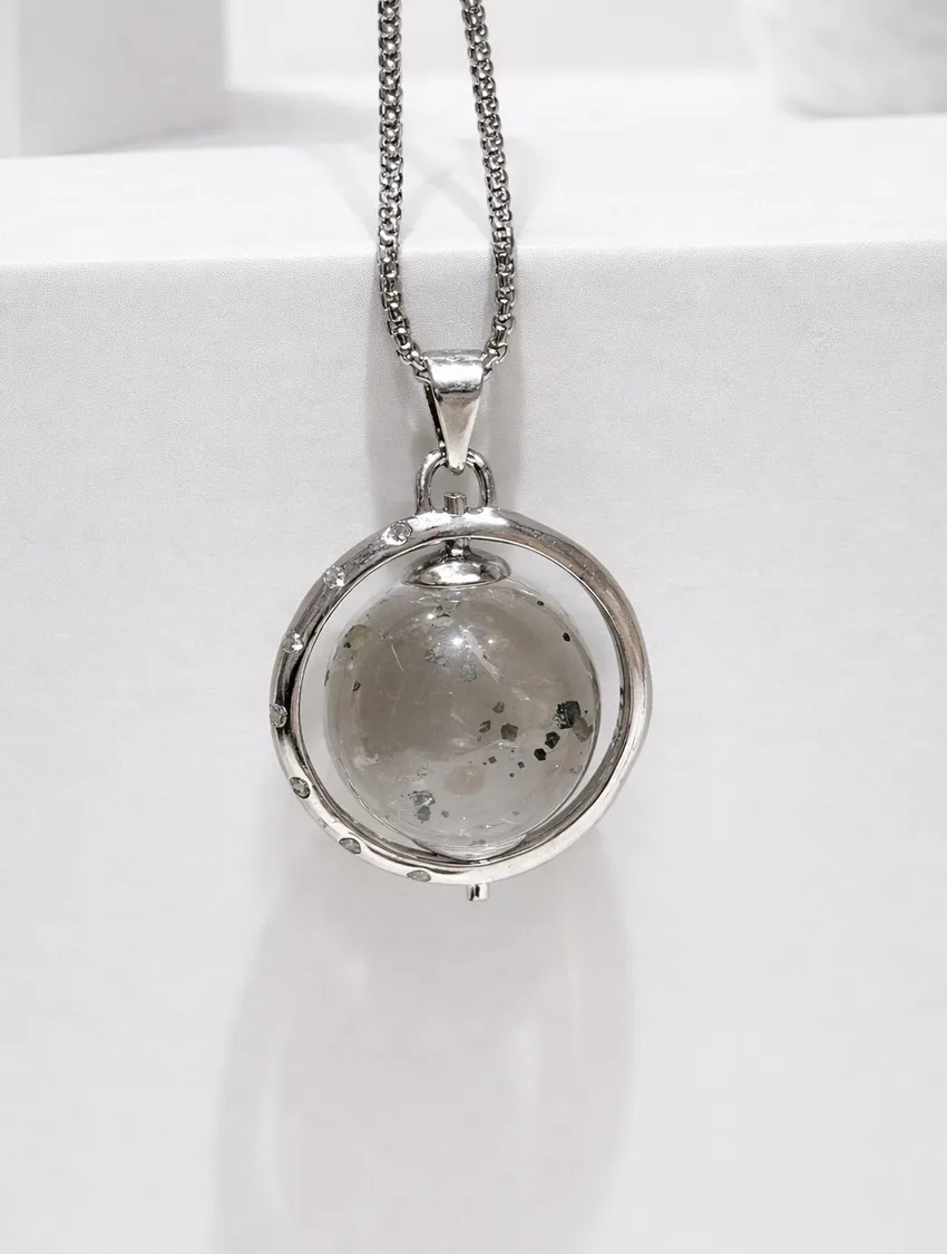 黃銅礦水晶球、純銀鑲嵌、鈦鋼項鍊