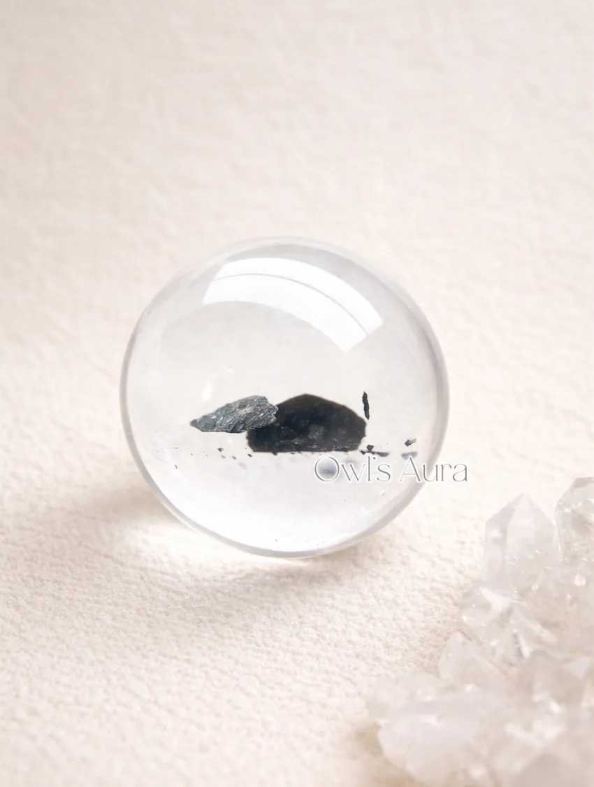 • 當黑雲母天然包裹在白水晶內: